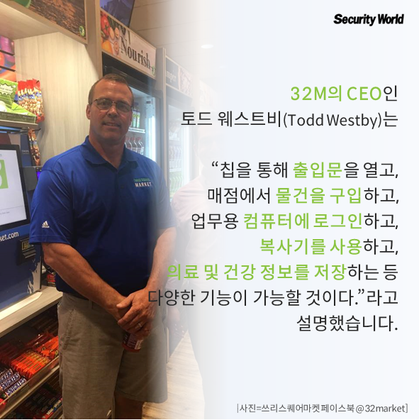 32MÀÇ CEOÀÎ Åäµå ¿þ½ºÆ®ºñ(Todd Westby)´Â “ĨÀ» ÅëÇØ ÃâÀÔ¹®À» ¿°í, ¸ÅÁ¡¿¡¼ ¹°°ÇÀ» ±¸ÀÔÇϰí, »ç¹«½Ç ÄÄÇ»ÅÍ¿¡ ·Î±×ÀÎÇϰí, º¹»ç±â¸¦ »ç¿ëÇϰí, ¸íÇÔÀ» °øÀ¯Çϰí, ÀÇ·á ¹× °Ç° Á¤º¸¸¦ ÀúÀåÇÏ´Â µî ´Ù¾çÇÑ ±â´ÉÀÌ °¡´ÉÇÒ °Í”À̶ó°í ¼³¸íÇß½À´Ï´Ù.