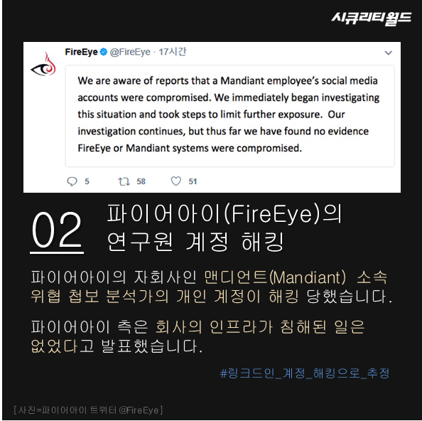 ±Û·Î¹ú »çÀ̹ö º¸¾È¾÷ü ÆÄÀÌ¾î¾ÆÀÌ(FireEye)ÀÇ ÀÚȸ»çÀÎ ¸Çµð¾ðÆ®(Mandiant) ¼Ò¼Ó À§Çù øº¸ ºÐ¼®°¡ÀÇ °³ÀÎ °èÁ¤ÀÌ ÇØÅ· ´çÇß½À´Ï´Ù.
