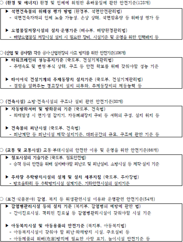 [½ÃÅ¥¸®Æ¼¿ùµå ±è¼º¹Ì ±âÀÚ] ÇàÁ¤¾ÈÀüºÎ°¡ »ýȰ ÁÖº¯ÀÇ °¢Á¾ ȯ°æ°ú ½Ã¼³¹°¿¡ ´ëÇÑ ¾ÈÀü±âÁØÀ» ½ÉÀÇ·µî·ÏÇÏ´Â Á¦µµ¸¦ º»°Ý ¿î¿µÇϱâ·Î Çß´Ù. Á¤ºÎ°¡ °¢Á¾ ¾ÈÀü±âÁØÀ» ÅëÇÕ °ü¸®ÇÔ¿¡ µû¶ó ±¹³» ¾ÈÀü ¼öÁØÀÌ ÇÑÃþ °³¼±µÉ Àü¸ÁÀÌ´Ù.