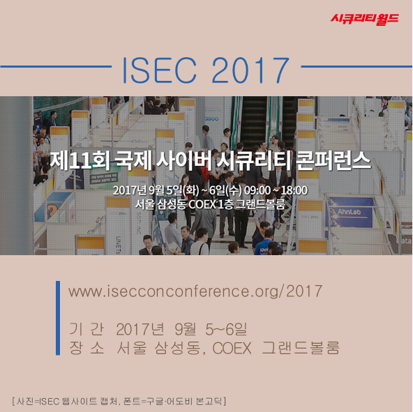 ¡âISEC 2017 (Á¦11ȸ ±¹Á¦ »çÀ̹ö ½ÃÅ¥¸®Æ¼ ÄÜÆÛ·±½º)