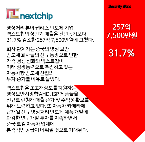 ³Ø½ºÆ®Ä¨Àº ÃʰíÇØ»óµµ¸¦ Áö¿øÇÏ´Â ¿µ»óº¸¾È½ÃÀåÇâ AHD, ISP Á¦Ç°µéÀ» ½Å±Ô·Î ·±ÄªÇØ ¸ÅÃâ Áõ°¡ ¹× ¼öÀͼº È®º¸¸¦ À§ÇØ ³ë·ÂÇϰí ÀÖ´Ù. ¶Ç ÀÚµ¿Â÷ Ä«¸Þ¶ó¿¡ žÀçµÉ ½Å±Ô ¿µ»óó¸® ¹ÝµµÃ¼ Á¦Ç° °³¹ß¿¡ °ú°¨ÇÑ ¿¬±¸°³¹ß ÅõÀÚ¸¦ Áö¼ÓÇÏ¸é¼ Áß±¹ ·ÎÄà ÀÚµ¿Â÷ ¾÷ü¿¡ º»°ÝÀûÀÎ °ø±ÞÀÌ ÀÌ·ïÁú °ÍÀ¸·Î ±â´ëµÈ´Ù.