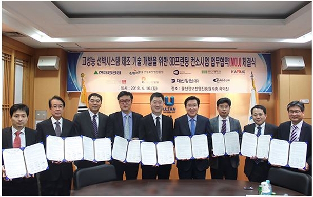 Çö´ëÁß°ø¾÷Àº Áö³ 16ÀÏ ¿ï»êÁ¤º¸»ê¾÷ÁøÈï¿ø(³²±¸ ¹«°Åµ¿)¿¡¼ ¿ï»êÁ¤º¸»ê¾÷ÁøÈï¿ø, ¿ï»ê´ë ÷´Ü¼ÒÀç°øÇкÎ, UNIST 3DÇÁ¸°ÆÃ ÷´Ü±â¼ú¼¾ÅÍ, Çѱ¹ÀûÃþÁ¦Á¶»ç¿ëÀÚÇùȸ(K-AMUG), ¿øÆ÷½Ã½º, ´ë°ÇÅ×Å©, ⼺, ´ë½Å°¾÷ µî°ú ¡®¼±¹Ú °ÇÁ¶ ºÐ¾ß 3DÇÁ¸°ÆÃ ±â¼ú °³¹ß ÄÁ¼Ò½Ã¾ö ±¸¼º ¾çÇØ°¢¼(MOU)¡¯¸¦ ü°áÇß´Ù.