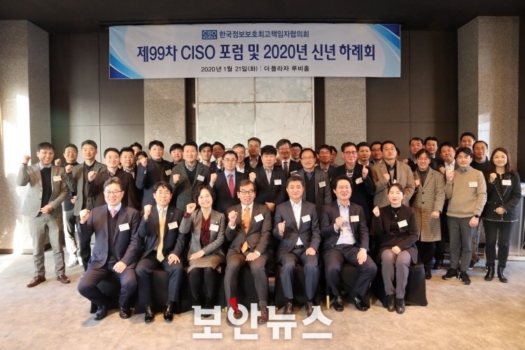 [º¸¾È´º½º ½Åµ¿ÈÆ ±âÀÚ] Çѱ¹CISOÇùÀÇȸ(ȸÀå À̱âÁÖ)°¡ 1¿ù 21ÀÏ ¼¿ï ´õÇöóÀÚ È£ÅÚ 22Ãþ ·çºñȦ¿¡¼ ¡®Á¦99Â÷ CISO Æ÷·³ ¹× 2020³â ½Å³â ÇÏ·Êȸ¡¯¸¦ °³ÃÖÇß´Ù. À̳¯ ÀÚ¸®¿¡´Â À̱âÁÖ Çѱ¹CISOÇùÀÇȸ ȸÀå, ±è¿µ±â ±ÝÀ¶º¸¾È¿ø ¿øÀå, Á¶Çö¼÷ ±¹°¡º¸¾È±â¼ú¿¬±¸¼Ò ¼ÒÀå µîÀ» ºñ·ÔÇØ ÁÖ¿ä ±â¾÷ CISO ¾à 60¸íÀÌ ÇÔ²² Çß´Ù.