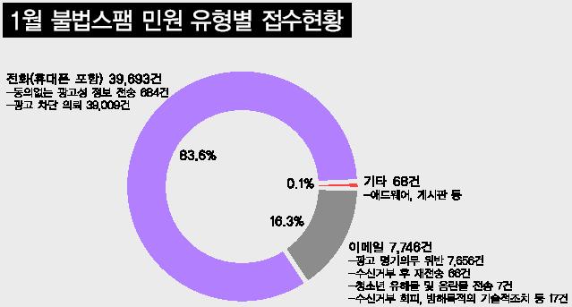 ¶ÇÇÑ 1¿ù À̸ÞÀÏ ½ºÆÔ ¹Î¿øÁ¢¼ö °Ç¼ö´Â ÃÑ 7õ746°ÇÀ¸·Î 12¿ù ´ëºñ 35.9% Áõ°¡Çß°í ÈÞ´ëÀüÈ ½ºÆÔ¹Î¿øÀº ÃÑ3¸¸9õ693°ÇÀ¸·Î Àü¿ù ´ëºñ 75.7% Áõ°¡ÇÑ °ÍÀ¸·Î ³ªÅ¸³µ´Ù. 1¿ùÁß KISA ÈÞ´ëÀüÈ ½ºÆÔ Æ®·¦ ½Ã½ºÅÛ¿¡ ÀÌÀÔµÈ ½ºÆÔÀº ÃÑ 2õ144°ÇÀ̾ú°í À¯Çüº°·Î´Â ¡®´ëÃâ/±ÝÀ¶¡¯°ü·Å ½ºÆÔÀÌ 1õ183°Ç(56%), ¡®°í°´À¯Ä¡(À§¼º¹æ¼Û µî)¡¯ÀÌ 761°Ç(35%) µîÀ¸·Î ³ªÅ¸³µ°í ȸ½Å¹øÈ£º°·Î´Â ½Ã³»ÀüÈ(873°Ç, 41%), À̵¿ÀüÈ(519°Ç, 34%) µîÀÌ ÁÖ¸¦ ÀÌ·ç¾ú´Ù.
