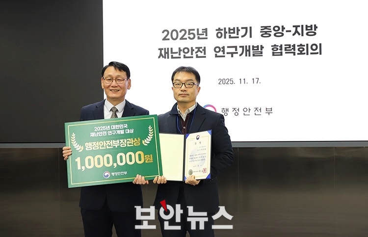 ¡ãÃÖÁØÈ£ ÀÎÅÚ¸®ºò½º ¿¬±¸¼ÒÀåÀÌ 2025 ´ëÇѹα¹ Àç³¾ÈÀü ¿¬±¸°³¹ß ´ë»ó ¼ö¿©½Ä¿¡¼ ÇàÁ¤¾ÈÀüºÎ Àå°ü»óÀ» ¼ö»óÇß´Ù [Á¦°ø: ÀÎÅÚ¸®ºò½º]