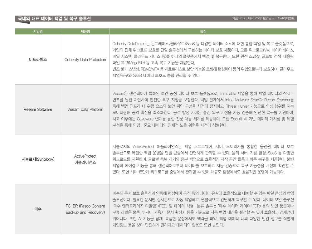 [º¸¾È´º½º ¿øº´Ã¶ ±âÀÚ] 2023³â ÇàÁ¤¸Á ¸¶ºñ »ç°Ç°ú 2025³â ±¹Á¤ÀÚ¿ø È­Àç »ç°ÇÀÌ ¿¬ÀÌ¾î ¹ß»ýÇϸ鼭 ±¹°¡ ½Ã½ºÅÛÀº ¹°·Ð ±â¾÷ÀÇ ¡®¿µ¼Ó¼º¡¯¿¡ »¡°£ºÒÀÌ ÄÑÁ³´Ù. ƯÈ÷ ±¹Á¤ÀÚ¿øÀÌ ¹é¾÷ ¹× º¹±¸ ¼Ö·ç¼ÇÀ» °®ÃèÀ½¿¡µµ ºÒ±¸ÇÏ°í ½ÇÁ¦ º¹±¸´Â ½ÇÆÐÇϸ鼭 ½Ã½ºÅÛ°ú µ¥ÀÌÅÍÀÇ ¹é¾÷ ¹× º¹±¸ ¼Ö·ç¼Ç¿¡ ´ëÇÑ °ü½ÉÀÌ Æø¹ßÀûÀ¸·Î Áõ°¡Çß´Ù. ƯÈ÷ ±âÁ¸ ¡®¹é¾÷¡¯ Á߽ɿ¡¼­ ½ÇÁ¦ °¡´ÉÇÑ ¡®º¹±¸¡¯·Î °ü·Ã »ê¾÷ÀÇ ÆÐ·¯´ÙÀÓÀÌ º¯È­Çϸ鼭 ½ÃÀåÀÇ ¼ºÀåÀ» ÁÖµµÇϰí ÀÖ´Ù.