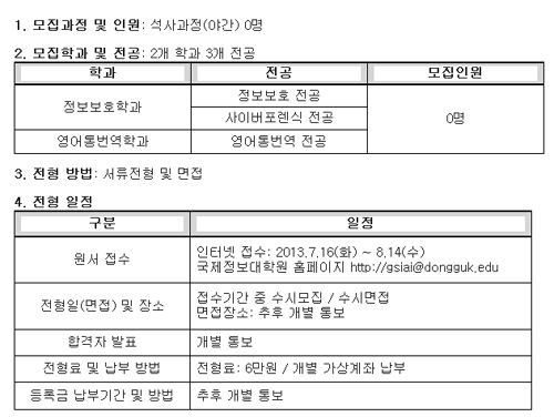 µ¿±¹´ë ±¹Á¦Á¤º¸´ëÇпø, 2013Çг⵵ Èı⠽Å(Æí)ÀÔ»ý ¸ðÁý