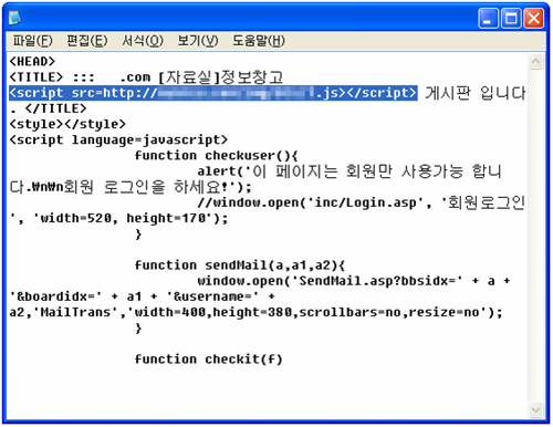 <scrlpt scr=http://xxxxxx.com/xxx/xxx/x.js></scrlpt> µîÀÇ ¾ÇÀÇÀûÀÎ ½ºÅ©¸³Æ®°¡ Æ÷ÇÔµÈ »çÀÌÆ®¸¦ ¹æ¹®ÇÑ °æ¿ì º¸¾ÈÃë¾àÁ¡ µîÀ» ÅëÇØ¼ Exploit Code°¡ ½ÇÇàµÇ°í, ÀÌ¿¡ µû¶ó ¸¹Àº ¾Ç¼ºÄڵ尡 »ç¿ëÀÚ ÄÄÇ»ÅÍ¿¡ À¯ÀԵȴÙ.