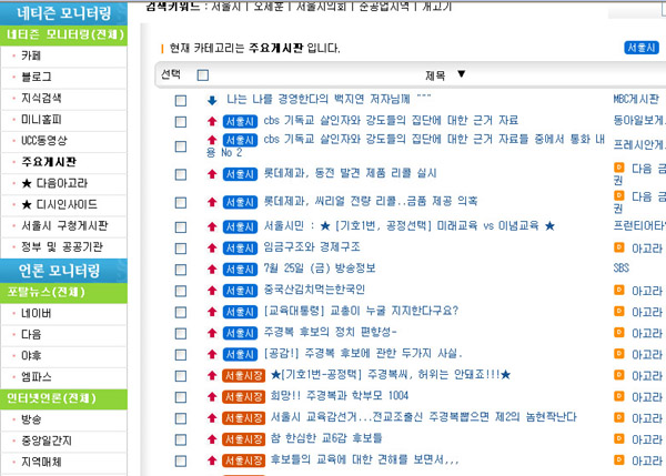 25ÀÏ ¿ÀÈÄ ¼¿ïƯº°½Ã ·Î°í°¡ ºÙÀº ¡®½Ç½Ã°£ ¿Â¶óÀÎ ¸ð´ÏÅ͸µ ½Ã½ºÅÛ¡¯À̶ó´Â »çÀÌÆ®¿¡¼ ¡®¼¿ï½Ã¡¯ ¡®¿À¼¼ÈÆ¡¯ µî °Ë»ö¾î¸¦ ¼³Á¤ÇØ ³õ°í ±¹³» ÁÖ¿ä »çÀÌÆ®¿Í À¯¸í °Ô½ÃÆÇ ´ñ±ÛÀ» °¨½ÃÇÏ´Â ÇöÀåÀÌ Æ÷ÂøµÅ ³×ƼÁðµé »çÀÌ¿¡¼ ³í¶õÀÌ ¹ß»ýÇß´Ù.