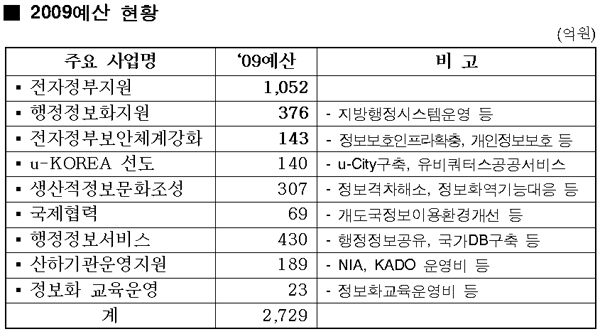 À̾î À念ȯ Çà¾ÈºÎ Á¤º¸º¸È£Á¤Ã¥°úÀåÀº ±×¿¡ µû¸¥ ¡®2009³âµµ Á¤º¸ÈÀü·«½Ç ¿¹»ê ÇöȲ¡¯À» ¹ßÇ¥Çß´Ù. ±× ³»¿ëÀº ´ÙÀ½ Ç¥¿Í °°´Ù.