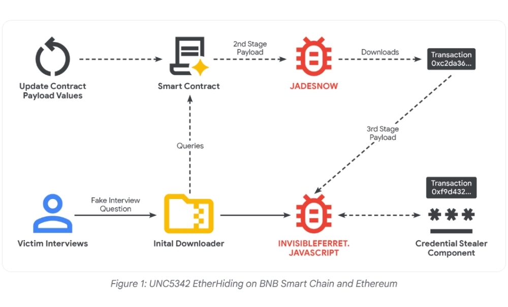 [º¸¾È´º½º °ÇöÁÖ ±âÀÚ] ºÏÇÑ ¿¬°è À§Çù ±×·ì UNC5342°¡ ¡®ÀÌ´õÇÏÀ̵ù¡¯(EtherHiding)À¸·Î ºÒ¸®´Â ½Å±Ô °ø°Ý ±â¹ýÀ» Ȱ¿ëÇØ ¾ÏÈ£ÈÆó Å»Ãë ¹× ¹Î°¨ Á¤º¸ ¼öÁýÀ» ¼öÇàÇϰí ÀÖ´Â Á¤È²ÀÌ ¹ß°ßµÆ´Ù.