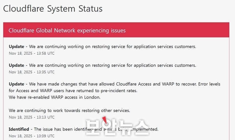 [º¸¾È´º½º Á¶ÀçÈ£ ±âÀÚ] Àü ¼¼°è ÀÎÅÍ³Ý Æ®·¡ÇÈÀÇ »ó´ç ºÎºÐÀ» ó¸®ÇÏ´Â ±Û·Î¹ú À¥ ÀÎÇÁ¶ó ±â¾÷ Ŭ¶ó¿ìµåÇ÷¹¾î(Cloudflare)¿¡¼ ´ë±Ô¸ð ¼ºñ½º Àå¾Ö°¡ ¹ß»ýÇØ ÁÖ¿ä ±Û·Î¹ú IT ¼ºñ½º°¡ ÁÙÁÙÀÌ ¸¶ºñµÇ´Â »çŰ¡ ¹ú¾îÁ³´Ù.