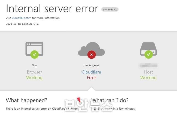 »ç¿ëÀÚµéÀº ¼ºñ½º Á¢¼Ó ½Ã ¡®Internal Server Error 500¡¯ ¸Þ½ÃÁö¸¦ ¸¶ÁÖÇϰųª, ¡®Àá½Ã¸¸ ±â´Ù·Á ÁֽʽÿÀ¡¯(Just a moment...), ¡®°è¼ÓÇÏ·Á¸é challenges.cloudflare.com Â÷´ÜÀ» ÇØÁ¦ÇϽʽÿÀ¡¯¿Í °°Àº º¸¾È °ËÁõ ȸ鿡¼ ¹«ÇÑ ·ÎµùÀÌ °É¸®´Â Çö»óÀ» °Þ°í ÀÖ´Ù. À̴ Ŭ¶ó¿ìµåÇ÷¹¾îÀÇ ¿§Áö ³×Æ®¿öÅ©°¡ »ç¿ëÀÚÀÇ ¿äûÀ» Á¤»óÀûÀ¸·Î ó¸®ÇÏÁö ¸øÇÒ ¶§ ¹ß»ýÇÏ´Â ÀüÇüÀûÀÎ Áõ»óÀÌ´Ù.