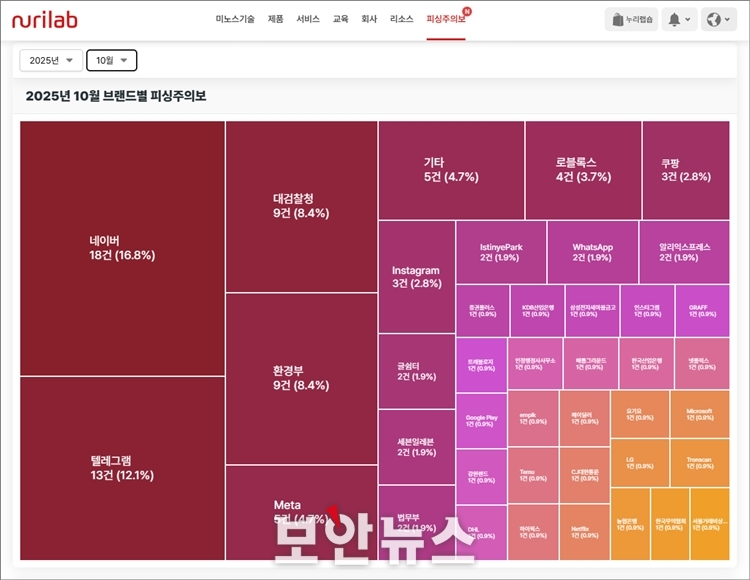 [º¸¾È´º½º Á¶ÀçÈ£ ±âÀÚ] ´©¸®·¦ÀÌ 10¿ù ÇÇ½Ì µ¥ÀÌÅ͸¦ ºÐ¼®ÇÑ °á°ú, ³×À̹ö¿Í ÅÚ·¹±×·¥À» »çĪÇÑ °ø°ÝÀÌ °¡Àå ¸¹¾Ò´Ù. ƯÈ÷, ¼îÇÎ ºÐ¾ß ºñÁßÀÌ 22.6%·Î ±ÞÁõÇØ ÀÌ¿ëÀÚÀÇ °¢º°ÇÑ ÁÖÀÇ¿Í °ËÁõÀÌ ¿ä±¸µÈ´Ù.