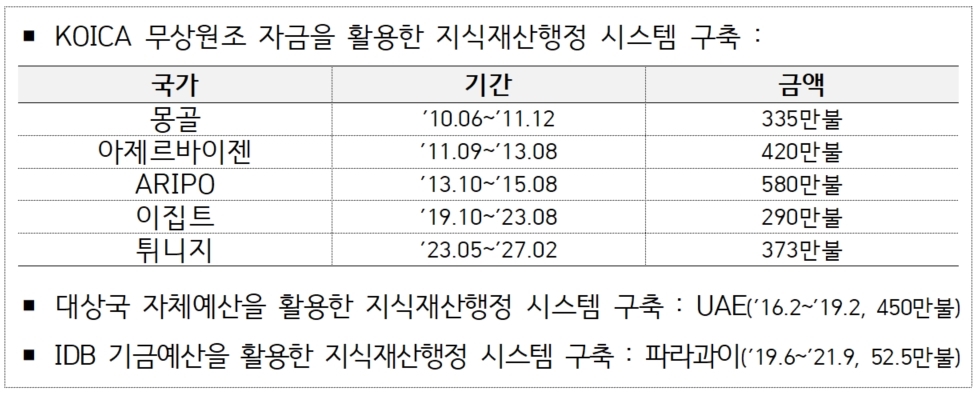 À̹ø »ç¾÷Àº Çѱ¹±¹Á¦Çù·Â´Ü(KOICA)ÀÇ °øÀû°³¹ß¿øÁ¶(ODA) ¿¹»ê 134¾ï¿øÀ¸·Î ÃßÁøµÇ´Â °ÍÀ¸·Î, Çѱ¹Çü Áö½ÄÀç»êÇàÁ¤ ½Ã½ºÅÛÀ» ÇØ¿Ü¿¡ ¼öÃâÇÑ »ç¾÷ Áß ÃÖ´ë ±Ô¸ð´Ù.