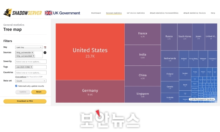 º¸¾È °Ë»ö Ç÷§Æû ¼¾½Ã½º ¶ÇÇÑ ¸®¾×Æ®, Waku, React Router, Next.js, RedwoodSDK¸¦ »ç¿ëÇÏ´Â 25¸¸ °÷ ÀÌ»óÀÇ ÀνºÅϽº°¡ ÀáÀçÀûÀ¸·Î Ãë¾àÇÏ´Ù°í ºÐ¼®Çß´Ù. ±¹°¡º°·Î´Â ¹Ì±¹ÀÌ ¾à 7¸¸°³·Î °¡Àå ¸¹¾Ò°í Áß±¹(3¸¸°³), µ¶ÀÏ(2¸¸5000°³), Àεµ(1¸¸3000°³)°¡ µÚ¸¦ À̾ú´Ù.