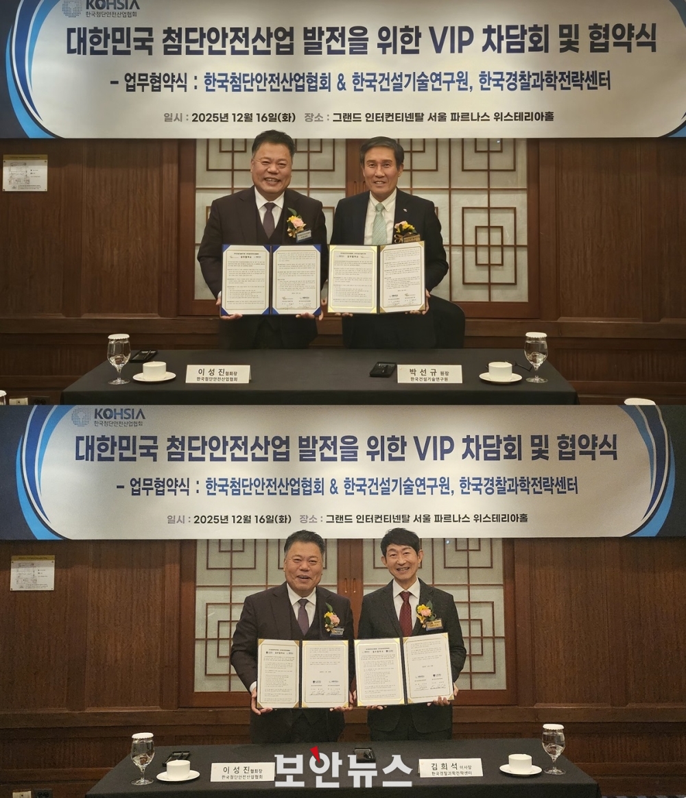 [º¸¾È´º½º °­ÃÊÈñ ±âÀÚ] Çѱ¹Ã·´Ü¾ÈÀü»ê¾÷Çùȸ(ȸÀå À̼ºÁø)´Â 12¿ù 16ÀÏ ¡®2025 ÷´Ü¾ÈÀü»ê¾÷ÀÎÀÇ ¹ã¡¯ »çÀü Çà»ç·Î »ï¼ºµ¿ ±×·£µå ÀÎÅÍÄÁƼ³ÙÅ» ¼­¿ï ÆÄ¸£³ª½º À§½ºÅ׸®¾ÆÈ¦¿¡¼­ Çѱ¹°Ç¼³±â¼ú¿¬±¸¿ø, Çѱ¹°æÂû°úÇÐÀü·«¼¾ÅÍ¿Í °¢°¢ ¾÷¹«Çù¾à(MOU)À» ü°áÇß´Ù°í ¹àÇû´Ù.