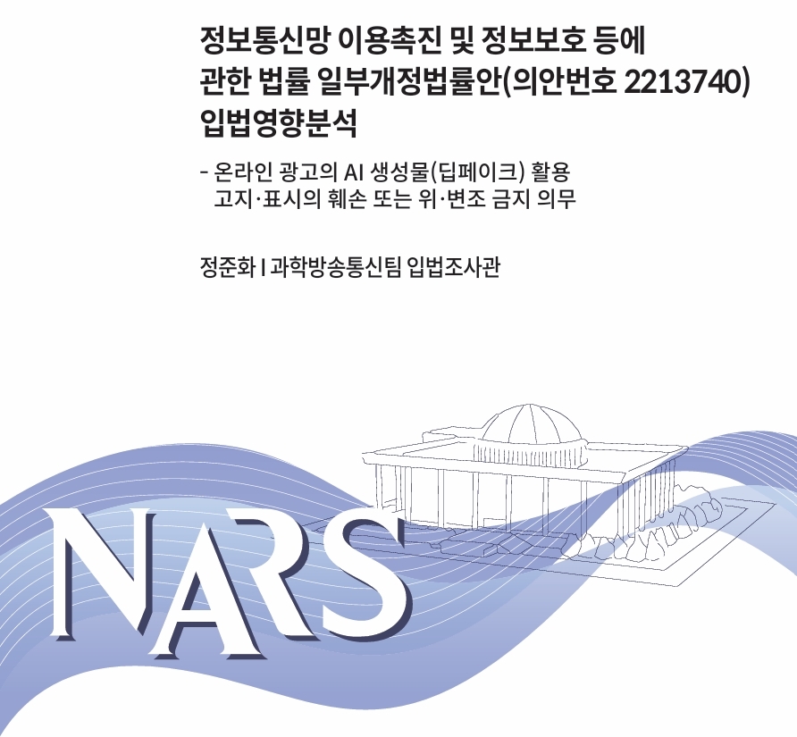 7ÀÏ ±¹È¸ÀÔ¹ýÁ¶»çó´Â ¡®Á¤º¸Åë½Å¸Á ÀÌ¿ëÃËÁø ¹× Á¤º¸º¸È£ µî¿¡ °üÇÑ ¹ý·ü ÀϺΰ³Á¤¹ý·ü¾È(ÀǾȹøÈ£ 2213740) ÀÔ¹ý¿µÇâºÐ¼®¡¯ - ¿Â¶óÀÎ ±¤°íÀÇ AI »ý¼º¹°(µöÆäÀÌÅ©) Ȱ¿ë °íÁö¡¤Ç¥½ÃÀÇ ÈÑ¼Õ ¶Ç´Â À§¡¤º¯Á¶ ±ÝÁö Àǹ«¡¯ º¸°í¼¸¦ °ø°³Çß´Ù.
