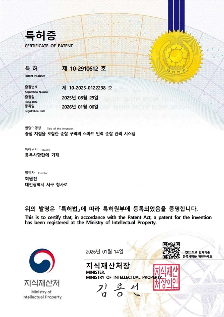 ¡ã´ë´öÆÄÆ®³Ê½º°¡ ÃëµæÇÑ IoT ¼øÂû °ü¸® ½Ã½ºÅÛ Æ¯Çã [Ãâó: ´ë´öÆÄÆ®³Ê½º]