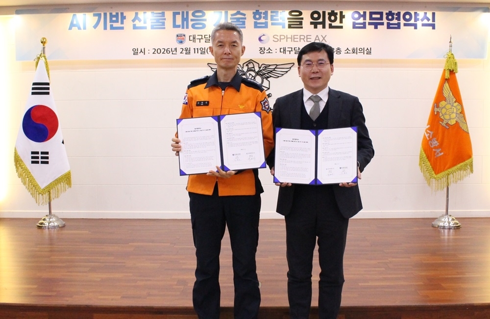 [º¸¾È´º½º ¾öÈ£½Ä ±âÀÚ] AI ¿µ»óºÐ¼® Àü¹®±â¾÷ ½ºÇǾîAX(´ëÇ¥ ¹ÚÀ±ÇÏ)´Â 2¿ù 11ÀÏ ´ë±¸´Þ¼¼Ò¹æ¼(¼Àå ±èÇü±¹)¿Í »êºÒ ÇöÀå ´ëÀÀ ¿ª·® °È¸¦ À§ÇÑ ¾÷¹«Çù¾à(MOU)À» ü°áÇß´Ù°í ¹àÇû´Ù.