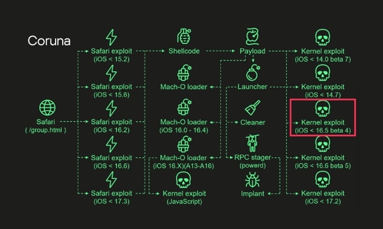 [º¸¾È´º½º Á¶ÀçÈ£ ±âÀÚ] ¾ÆÀÌÆùÀ» ³ë¸° Áö´ÉÇü À§ÇùÀÌ ÁøÈÇϰí ÀÖ´Ù. Ä«½ºÆÛ½ºÅ° ¿¬±¸ÁøÀº ¾ÆÀÌÆù ÇØÅ· µµ±¸ÀÎ Äڷ糪(Coruna)°¡ ´Ü¼øÈ÷ °ø°³µÈ Ãë¾àÁ¡À» Â¥±é±âÇÑ °ÍÀÌ ¾Æ´Ï¶ó ±âÁ¸ ÇÁ·¹ÀÓ¿öÅ©¿¡¼ Äڵ带 È®ÀåÇØ¿Â °á°ú¹°ÀÓÀ» È®ÀÎÇß´Ù.