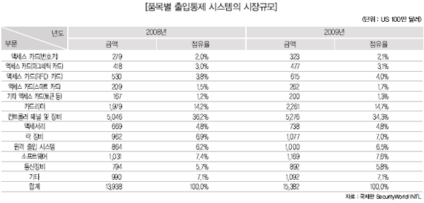 ¤ýIP ±â¹Ý ÃâÀÔÅëÁ¦ ½Ã½ºÅÛ, ¹«¼± ±â¼ú, Ÿ º¸¾È ½Ã½ºÅÛ°úÀÇ ÅëÇÕ, ¹°¸®Àû/³í¸®Àû ÃâÀÔÅëÁ¦ÀÇ ÅëÇÕ µîÀÇ Ãß¼¼´Â ÇâÈÄ 5³â°£ ÃâÀÔÅëÁ¦ ½ÃÀåÀ» ¼ºÀå½ÃŰ´Â ¿äÀÎÀÌ µÉ °ÍÀÓ.