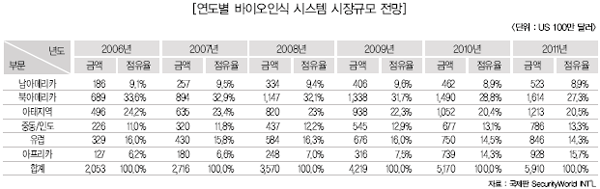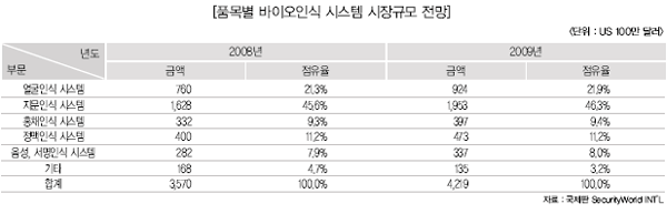 ¤ýÀü ¼¼°èÀûÀ¸·Î ¹ÙÀÌ¿ÀÀÎ½Ä ±â¼ú¿¡ ´ëÇÑ Å« °ü½É°ú ÅõÀÚ°¡ ¹ÙÀÌ¿ÀÀÎ½Ä ÁöÃâÀ» Áõ°¡½ÃÄÑ 2008³â 35¾ï ´Þ·¯¿´´ø ½ÃÀåÀº 2013³â 73¾ï ´Þ·¯¿¡ ´ÞÇÒ °ÍÀ¸·Î Àü¸ÁµÊ. ¿Ü°ûº¸¾È ¹× ÃâÀÔÅëÁ¦±â±â ½ÃÀå¿¡¼ ¹ÙÀÌ¿ÀÀÎ½Ä ±â±â´Â ½ÃÀå ¼ºÀåÀÇ °ßÀÎÂ÷ ¿ªÇÒÀ» ÇÒ °ÍÀ¸·Î Àü¸ÁµÊ.