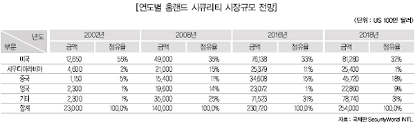 ¤ý¹Ì±¹Àº ´ÜÀÏ ±Ô¸ð·Î´Â ÃÖ´ëÀÇ ¹Î°£ º¸¾È ¼ºñ½º ¼Òºñ½ÃÀå ÀÚ¸®¸¦ À¯ÁöÇÒ °ÍÀ̸ç, Àü ¼¼°è ¼ö¿äÀÇ 3ºÐÀÇ 1À» Â÷ÁöÇÒ °ÍÀÓ.