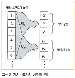 ³»Ãß·² ºñÀü¿¡¼´Â ÃÔ¿µÇÑ ¿µ»ó ½ÅÈ£·ÎºÎÅÍ Ä«¸Þ¶óÀÇ °¨µµ Ư¼ºÀ̳ª Á¶¸í±¤ÀÇ ºÐ±¤(ÝÂÎÃ) Ư¼ºÀ» ÀÌ¿ëÇØ Ä«¸Þ¶ó¿¡ µé¾î¿Â ±¤ ½ºÆåÆ®·³À» ȼҴÜÀ§·Î ¸ðÀ¸°í, Àΰ£ÀÇ ½Ã°¢Æ¯¼º(»ö ÇÔ¼ö)À» Åä´ë·Î °üÂûÀÚ¿¡ Á¦½ÃÇÏ´Â »öÀ» »êÃâÇÑ´Ù(±×¸²1). Á¾·¡ÀÇ 3¿ø»öÀÇ Ä«¸Þ¶ó¸¦ ÀÌ¿ëÇÏ´Â °Íµµ ÁÁÁö¸¸, Á¤µµ¸¦ ³ôÀ̱â À§Çؼ´Â ´Ù¼ö ¹êµå(´Ù¿ø»ö, ¸ÖƼ ½ºÆåÆ®·³)¿¡¼ÀÇ ÀÔ·ÂÀÌ À¯È¿ÇÏ´Ù. µ¿È¿ëÀÇ ½Ã½ºÅÛÀ¸·Î¼´Â 6¹êµå ÇÏÀ̺ñÀü Ä«¸Þ¶óÀÇ ½ÃÀÛ¡¤½ÇÁõÀ» Çϰí ÀÖ´Â »óÅ´Ù. ½ºÆåÆ®·³¿¡ Åä´ë¸¦ µÐ »ö 󸮿¡ µû¶ó, ÃÔ¿µÇÑ »öÀ» Ãæ½ÇÇÏ°Ô Ç¥½ÃÇÏ´Â °Í¸¸ ¾Æ´Ï¶ó, ´Ù¸¥ Á¶¸í±¤ÀÇ ¾Æ·¡¿¡ ½Ç¹°À» ³õ¾ÒÀ» ¶§ÀÇ »öÀ» ½Ã¹Ä·¹ÀÌÅÍÇÏ´Â °Íµµ °¡´ÉÇÏ´Ù. ÀÌ¿¡ µû¶ó ¸¶Ä¡ ½Ç¹°ÀÌ ´«¾Õ¿¡ ÀÖ´Â °Íó·³ ³ôÀº Áú°¨À» ³ªÅ¸³»´Â ¿µ»ó ÀçÇöÀÌ °¡´ÉÇÏ´Ù.