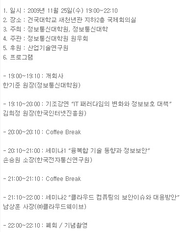 À̳¯ ¼¼¹Ì³ª¿¡´Â ±èÈñÁ¤ Çѱ¹ÀÎÅͳÝÁøÈï¿ø(KISA) ¿øÀåÀÇ ¡®IT ÆÐ·¯´ÙÀÓÀÇ º¯È­¿Í Á¤º¸º¸È£ ´ëÃ¥¡¯À̶õ ÁÖÁ¦·Î ±âÁ¶°­¿¬ÀÌ ÀÖÀ» ¿¹Á¤ÀÌ¸ç ¼Õ½Â¿ø Çѱ¹ÀüÀÚÅë½Å¿¬±¸¿ø ¼ÒÀåÀÌ ¡®À¶¡¤º¹ÇÕ ±â¼ú µ¿Çâ°ú Á¤º¸º¸¾È¡¯À̶õ ÁÖÁ¦·Î, ³²»óÈÆ Ŭ¶ó¿ìµå¿þÀÌºê ´ëÇ¥°¡ ¡®Å¬¶ó¿ìµå ÄÄÇ»ÆÃÀÇ º¸¾ÈÀ̽´¿Í ´ëÀÀ¹æ¾È¡¯À̶õ ÁÖÁ¦·Î °­¿¬À» ÆîÄ¥ ¿¹Á¤ÀÌ´Ù.