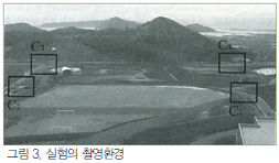 ½ÇÁ¦ ÃÔ¿µµÈ ¿µ»óÀ» »ç¿ëÇÏ¿© Ä«¸Þ¶ó ¿¬°á °ü°èÀÇ ÃßÁ¤ ¹× µ¿ÀϹ°Ã¼ ´ëÀÀ¿¡ °üÇÑ ½ÇÇèÀ» ½ÃÇàÇß´Ù. ±×¸² 3¿¡ ÃÔ¿µÈ¯°æÀÇ Àü°æÀ» ³ªÅ¸³Â´Ù. ÀÌ ±×¸²¿¡¼­ ³ªÅ¸³­ ȯ°æÀ» 4´ëÀÇ Ä«¸Þ¶ó·Î ÃÔ¿µÇÑ´Ù. ±×¸² 3³»ÀÇ Æ²Àº °¢°¢ÀÇ Ä«¸Þ¶óÀÇ ½Ã¾ß¸¦ Ç¥ÇöÇÑ °ÍÀÌ´Ù.