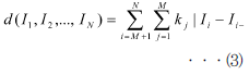 ÁÙ¹«´Ì °­µµºÐÆ÷ Á¶ÇÕ(I1, I2,¡¤¡¤¡¤ IN)¿¡ ´ëÇØ¼­, °¢ ÁÖ¸ñ ÁÙ¹«´Ì¿Í ±× ÀÎÁ¢¿µ¿ª ÁÙ¹«´ÌÀÇ °­µµÄ¡ÀÇ Â÷¸¦ Á¾ÇÕÀûÀ¸·Î Æò°¡Çϱâ À§Çؼ­, (3)½Ä°ú °°Àº Æò°¡ÇÔ¼ö d(I1, I2,¡¤¡¤¡¤IN)¸¦ Á¤ÀÇÇϰí, ÀÌ ¼öÄ¡¸¦ ÃÖ´ë·Î ÇÏ´Â Á¶ÇÕÀ» ÃÖÀûÁ¶ÇÕÀ¸·Î ÇÑ´Ù.