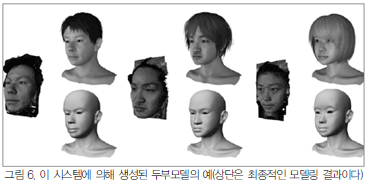 Àι°µÎºÎ¸ðµ¨Àº (1)Á¤¸é ¹× Ãø¸é¿¡¼­ ÃÔ¿µµÈ ¾ó±¼»çÁø°ú ij¸¯ÅÍÀÇ ½ºÄÉÄ¡¸¦ ±âº»À¸·Î CG Å©¸®¿¡ÀÌÅͰ¡ 3Â÷¿ø ¸ðµ¨¸µ ¼ÒÇÁÆ®¸¦ ÀÌ¿ëÇÏ¿© ¼öÀÛ¾÷À¸·Î Á¦ÀÛÇÑ´Ù. (2)µÎºÎ ÁÖÀ§¸¦ °èÃø °¡´ÉÇÑ ·¹ÀÎÁö ½ºÄ³³Ê¸¦ ÀÌ¿ëÇÏ¿© ½ÇÀçÇÏ´Â Àι°ÀÇ µÎºÎÇü»óÀ» °èÃøÇϰí, ¼öÀÛ¾÷¿¡ ÀÇÇØ, °èÃøÀÌ ¾î·Á¿î ºÎÀ§ÀÇ ±¸¸ÛÀ» ¸Þ¿ö ¾ÆÁÖ ¼¼¹ÐÇÑ ³ëÀÌÁ ÆòȰȭ(øÁüÁûù)ÇÑ ÈÄ, ¹Ì¸® ÁغñÇÑ ¸Þ½¬ ¸ðµ¨À» Á¤ÇÕÇÔÀ¸·Î½á Á¦ÀÛÇÏ´Â °ÍÀÌ ÀϹÝÀûÀÌ´Ù. ±×·¯³ª µÎ °¡Áö ¸ðµÎ ¼öÀÛ¾÷¿¡ ÀÇÇÑ ½Ã°£°ú ³ë·ÂÀ» ÇÊ¿ä·Î ÇÏ´Â ¹®Á¦°¡ ÀÖ´Ù.