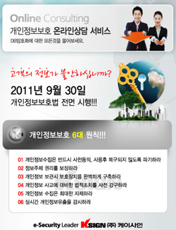¶ÇÇÑ °³ÀÎÁ¤º¸º¸È£¹ý°ú °ü·ÃÇØ¼´Â °³ÀÎÁ¤º¸¸¦ À§ÇÑ ´Ù¾çÇÑ ±â¼úÀû ¹æ¹ý¿¡ ´ëÇØ ¿Â¶óÀι®ÀÇ(help@ksign.com)¸¦ ÅëÇØ ¹«·á»ó´ãÀ» ÇØÁÙ °èȹÀÌ´Ù.