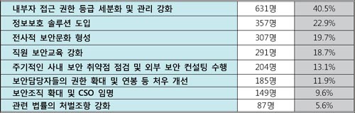 ÀÌ¾î¼ ¡®Á÷¿ø º¸¾È±³À° °È¡¯¶ó°í ´äÇÑ »ç¶÷ÀÌ 291¸í(18.7%)À¸·Î ÁÖ±âÀûÀÎ º¸¾È±³À°À» ÅëÇÑ º¸¾ÈÀÎ½Ä Á¦°í¸¦ Á¤º¸À¯Ãâ ¿¹¹æÀ» À§ÇÑ ´ëÃ¥À¸·Î ²Å¾Ò´Ù.