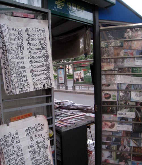 ¡ã Áß±¹ º£ÀÌ¡ ½Ã³»¿¡ ÀÖ´Â ÇÑ ½Å¹®¡¤ÀâÁö °¡ÆÇ´ë¿¡¼ À̵¿ÀüÈ ¹øÈ£µéÀÌ »©°îÈ÷ ÀûÈù ¾È³»ÆÇÀ» ³»°É°í ÆÇ¸ÅÇϰí ÀÖ´Ù. ¼ÒºñÀÚµéÀº À̵¿ÀüÈ ¹øÈ£°¡ ´ã±ä SIM Ä«µå¸¦ ±¸¸ÅÇØ À̵¿Àüȱ⿡ ²ÈÀ¸¸é À̵¿ÀüÈ ¼ºñ½º¿¡ °¡ÀÔµÇ¸é¼ ÅëÈÇÒ ¼ö ÀÖ´Ù.