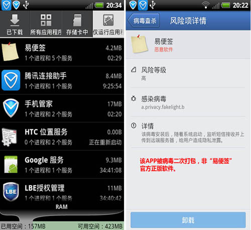 ¡ã 2013³â Á¦3ºÐ±â Áß±¹ ³» ½º¸¶Æ®Æù ¿ë ÂÊÁö¤ý¸Þ¸ð ¾ÖÇø®ÄÉÀ̼ÇÀÎ ¡®ÀÌ뱬첀¡®¿¡¼ ¹ÙÀÌ·¯½º ¡®a.privacy.fakelight.b¡¯°¡ ŽÁöµÈ ȸé.