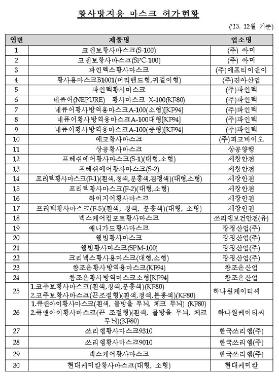¼ÒºñÀÚµéÀÌ ¾à±¹, ¸¶Æ®, ÆíÀÇÁ¡ µî¿¡¼ Ȳ»ç¹æÁö¿ë ¸¶½ºÅ©¸¦ ±¸ÀÔÇϰíÀÚ ÇÏ´Â °æ¿ì¿¡´Â ¹Ýµå½Ã Á¦Ç° ¿ë±â ¶Ç´Â Æ÷Àå¿¡ ¡âÀǾà¿Üǰ ¡âȲ»ç¹æÁö ¡âȲ»ç¸¶½ºÅ©¶õ Ç¥½Ã¸¦ ²À È®ÀÎÇØ¾ß ÇÑ´Ù. ÀǾà¿ÜǰÀ¸·Î Çã°¡ ¹ÞÀº Ȳ»ç¹æÁö¿ë ¸¶½ºÅ© Á¦Ç°Àº ½Ä¾àó ȨÆäÀÌÁö(http://www.mfds.go.kr/ ¡æ ºÐ¾ßº°Á¤º¸¡æ ¹ÙÀÌ¿À¡æ ÀǾà¿ÜǰÁ¤º¸¡æ ¡®È²»ç¹æÁö¿ë ¸¶½ºÅ©¡¯ Çã°¡ÇöȲ)¿¡¼ È®ÀÎ ÇÒ ¼ö ÀÖ´Ù.