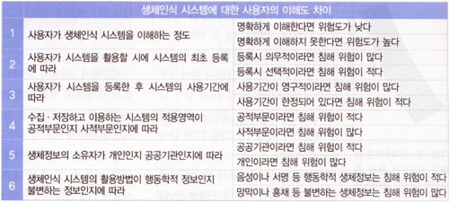 ¾Õ¼ Ç¥¿¡¼ º¸µíÀÌ »ýüÀνıâ¼úÀº ÀϹÝÀεéÀÌ ´À³¢±â¿¡ ÀÌ¿ëÇÏ´Â »ýüÁ¤º¸³ª ±× ¿î¿µ¹æ½Ä¿¡ µû¶ó ÇÁ¶óÀ̹ö½Ã Ä§ÇØ¿¡ ´ëÇÑ À§Çù Á¤µµ°¡ Â÷À̰¡ ³¯ ¼ö ÀÖ´Ù´Â °ÍÀ» ¾Ë ¼ö ÀÖ´Ù. ÇÊÀÚ°¡ ¿©±â¿¡¼ ¸»ÇϰíÀÚ ÇÏ´Â °ÍÀº ÀÌ·± Â÷À̸¦ ÀÎÁ¤ÇÏ°í ¿©·¯ °¡Áö ±âÁؾÈÀ» Á¦½ÃÇÔÀ¸·Î ÀÎÇØ ÇÁ¶óÀ̹ö½Ã¸¦ Ä§ÇØÇÒ ¼ö ÀÖ´Â °æ¿ìÀÇ ¼öµéÀ» Á¦ÇÑÇϸé ÀÌ ¹®Á¦¿¡ ´ëÇÑ ÇØ´äÀ» ãÀ» ¼ö ÀÖÀ» °ÍÀ̶ó´Â Á¡ÀÌ´Ù.