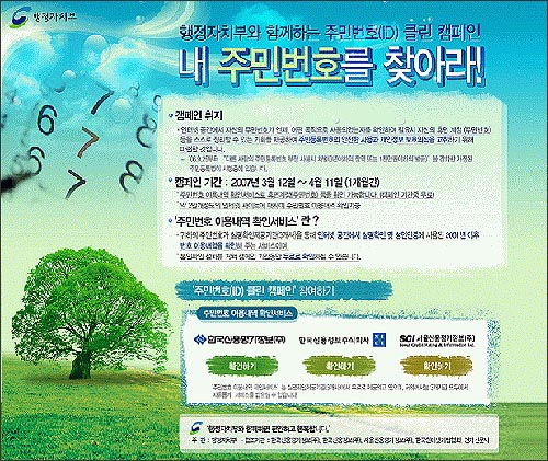 À̰°Àº ÇÇÇØ¸¦ ¸·±â À§ÇØ ÇàÁ¤ÀÚÄ¡ºÎ(www.mogaha.go.kr)´Â ´ÙÀ½´Þ 11±îÁö ÀÎÅÍ³Ý »çÀÌÆ®¿¡ °¡ÀÔÇÑ ÀÚ½ÅÀÇ Á¤º¸¸¦ ã¾ÆÁÖ´Â ¡®ÁֹιøÈ£ À̿볻¿ª È®Àμ­ºñ½º¡¯¸¦ ½Ç½ÃÇϰí ÀÖ´Ù.