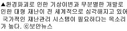 ȯ°æÆÄ±«·Î ÀÎÇÑ ±â»óÀ̺¯°ú ¹«ºÐº°ÇÑ °³¹ß·Î ÀÎÇÑ ´ëÇü Àç³­ÀÌ Àü ¼¼°èÀûÀ¸·Î ½É°¢ÇØÁö°í ÀÖ¾î ±¹°¡ÀûÀÎ Àç³­°ü¸® ½Ã½ºÅÛÀÌ ÇÊ¿äÇÏ´Ù´Â ¸ñ¼Ò¸®°¡ ³ô´Ù.