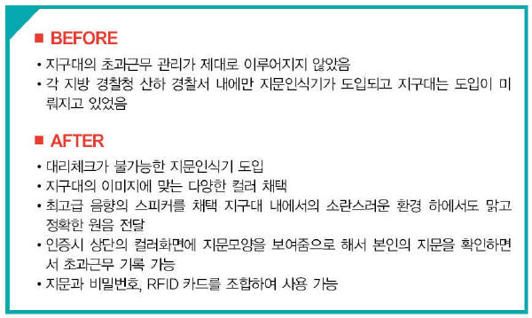 ¼ö³â Àü¿¡ °¢ Áö¹æ °æÂûû »êÇÏ °æÂû¼ ³»¿¡ Ãʰú±Ù¹« °ü¸®¸¦ À§ÇÑ Áö¹®Àνı⠵µÀÔÀÌ ÀÌ·ç¾îÁ³¾ú´Ù. ÇÏÁö¸¸ ¿©·¯ °¡Áö »çÀ¯·Î Áö±¸´ë´Â µµÀÔ¼³Ä¡°¡ Áö¿¬µÇ°í ÀÖ¾ú´Ù. ÃÖ±Ù¿¡ Áö±¸´ëµµ º¹¸®ÈÄ»ýÀ» À§ÇØ Ãʰú±Ù¹« °ü¸®¿ë Áö¹®Àνı⠵µÀÔÀÌ º»°ÝȵDZ⠽ÃÀÛÇß°í, ±âÁ¸ÀÇ ¼öÀÛ¾÷ ¹æ½ÄÀ» ¹þ¾î³ª ´ë¸®Ã¼Å©°¡ ºÒ°¡´ÉÇÑ Áö¹®Àνı⸦ µµÀÔÇϱ⿡ À̸£·¶´Ù.