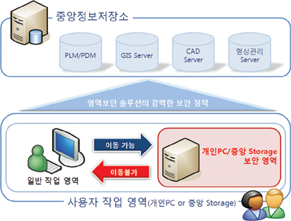 ÀúÀ念¿ª±â¹Ý º¸¾È(Storage-based Security)À̶õ Áß¿ä Á¤º¸ÀÚ»êÀÌ »ý¼ºµÇ°í Ȱ¿ëµÇ´Â ±â¾÷ ³» Áß¿äÁ¤º¸ÀÇ º¸¾È¿µ¿ª ÀúÀå°ø°£°ú °³ÀÎ ¾÷¹« µîÀÇ ÀÏ¹Ý ÀúÀå°ø°£À» ±¸ºÐÇϰí,ÀÌµé °£ÀÇ À̵¿¿¡ ´ëÇÏ¿© ·Î±ë/½ÂÀÎ/¾ÏÈ£È/ÅëÁ¦ÇÏ´Â º¸¾È¹æ¹ýÀ¸·Î ÆÄÀÏÀÌ ¾Æ´Ñ ÀÛ¾÷¿µ¿ª¿¡ ´ëÇÑ º¸¾ÈÀ» ¼öÇàÇÏ´Â ¼Ö·ç¼ÇÀÌ´Ù.