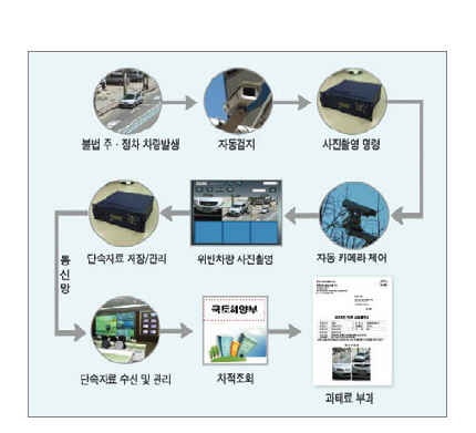 ºÒ¹ý ÁÖ¡¤Á¤Â÷ ´Ü¼Ó ½Ã½ºÅÛÀº ¿ø°ÝÁö¿¡ ¼³Ä¡µÈ ¿©·¯ ´ëÀÇ Ä«¸Þ¶ó¸¦ ÅëÇØ µµ·Î»óÀÇ ±ÝÁö±¸¿ª ³»¿¡ ÁÖ¡¤Á¤Â÷ÇÏ´Â Â÷·®À» °ËÁöÇϰí, ¹øÈ£ÆÇ »çÁø°ú ¹è°æ»çÁø µîÀ» ÃÔ¿µ, ÇØ´çÂ÷·®ÀÇ ¹øÈ£ÆÇÀ» ÀÚµ¿À¸·Î ÀνÄÇØ ÀúÀå/°ü¸®ÇÏ°Ô µÈ´Ù. ÀÌ·¸°Ô ȹµæµÈ ´Ü¼Ó±Ù°ÅÀÚ·á´Â ¼¾ÅÍ·Î Àü¼ÛµÇ¾î °¢Á¾ ¼¹ö¿¡ ÀÇÇØ °¡°ø 󸮵ǰí, ±¹ÅäÇØ¾çºÎ Â÷Àû Á¶È¸¸¦ °Åó À§¹Ý»ç½Ç Å뺸¼¿Í °úÅ·áºÎ°ú ÅëÁö¼°¡ À§¹ÝÂ÷·® ¿îÀüÀÚ¿¡°Ô ÀÚµ¿À¸·Î ¹ßºÎµÈ´Ù.