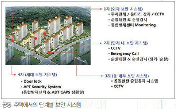 ÀÌ·¯ÇÑ °øµ¿ÁÖÅÃÀÇ º¸¾È ½Ã½ºÅÛÀº ¿Ü°ûº¸¾ÈºÎÅÍ ¼¼´ëº¸¾È ½Ã½ºÅÛ±îÁö ¹°¸®Àû º¸¾È¿ä¼Ò¿Í Àü¹® ¿î¿µÀηÂÀÇ À¯±âÀû °áÇÕ ¹× ¿î¿µÀ» ÅëÇÏ¿© ±× È¿°ú¸¦ ´õ¿í ³ôÀÏ ¼ö ÀÖ´Ù. ¸î ³â Àü±îÁö¸¸ ÇØµµ ¹«Àΰæºñ ¼ºñ½º¸¦ ÀÌ¿ëÇÏ´Â °ÍÀº ºÎÀÇ »ó¡ó·³ ¿©°ÜÁ® ¿ÔÀ¸³ª, Ÿ¿îÇϿ콺³ª ½ÅÃàµÇ´Â ¾ÆÆÄÆ®´ÜÁö¿¡´Â ½Ã°ø´Ü°è¿¡¼ºÎÅÍ º¸¾ÈÀåºñ¸¦ ³»ÀçÇÏ´Â ¹æ½ÄÀÇ ¸¶ÄÉÆÃ ÇüÅ·Π´ëÁßȵǰí ÀÖ´Ù.