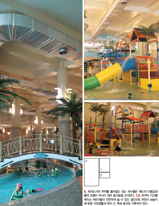 ƯÈ÷ ¹° ¾È¿¡¼­ÀÇ ¸ðµç Áñ°Å¿òÀ» üÇèÇÒ ¼ö ÀÖ´Â ¿öÅ͵µ½Ã´Â »ç°èÀý ÀÌ¿ë °¡´ÉÇÑ ¿öÅÍÆÄÅ©¿Í ½ºÆÄ·Î ÀÌ·ç¾îÁ® ´Ù¾çÇÑ ¹°³îÀÌ °ø°£À» ÀÚ¶ûÇÑ´Ù. Â¥¸´ÇÑ Áñ°Å¿òÀ» Á¦°øÇÏ´Â 100mÀÇ Á¦ºê¶ó ½½¶óÀ̵å¿Í ž½ÂÀÚ°¡ Ãʰí¼Ó ½ºÇǵå·Î ¿ìÁÖÀÇ ºí·¢È¦Ã³·³ ¹°¼ÓÀ¸·Î »¡·Á µé¾î°¡´Â ½ºÆäÀ̽º º¼ µî 7°¡Áö °¢¾ç°¢»öÀÇ ¿öÅÍ ½½¶óÀ̵尡 Ưº°ÇÑ Áñ°Å¿òÀ» ¼±»çÇϸç, ¸¶½ÃÁö ±â´ÉÀÇ ¹Ùµ¥Ç®, ´ÚÅÍÇǽà À̺¥Æ®ÅÁ, È÷³ëŰÅÁ, Á·ÅÁ, ÆøÆ÷ÅÁ µî ´Ù¾çÇÑ ½ºÆÄ½Ã¼³µµ ¿öÅ͵µ½Ã¸¸ÀÇ Æ¯Â¡ÀÌ´Ù.