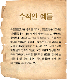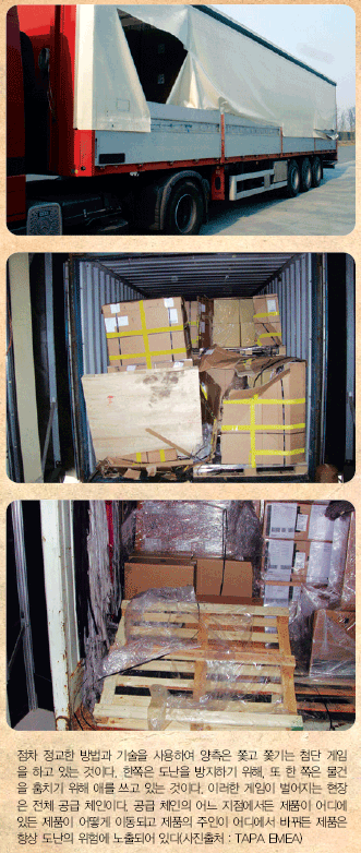 TAPA(Transported Assets Protection Assocition) ±âÁØÀ» ÁؼöÇÏ´Â ¿î¼Û»ê¾÷Àº ÃÖ±Ù ¸î ³â µ¿¾È µµ³À» ¹æÁöÇϱâ À§ÇØ ±â¼ú°ú °øÁ¤ ºÎ¹®¿¡¼ ´ë±Ô¸ð ÅõÀÚ¸¦ °¨ÇàÇß´Ù. ÀϺÎÀÇ ´ëÇü ¿î¼Û ȸ»çµéÀº TAPA ±âÁØ ÀÌ»óÀ» Àû¿ëÇϰí ÀÖ´Ù. ±×µéÀº °í°´µéÀÇ °í°¡ Á¦Ç°À» ¿Ïº®ÇÏ°Ô º¸È£ÇÏ°í º¸¾ÈÀ» À¯ÁöÇÏ´Â °ÍÀÌ °æÀï·Â À¯ÁöÀÇ ºñ°áÀÓÀ» ¾Ë°í ÀÖ´Ù. ÇâÈÄ¿¡´Â À̰ÍÀÌ ½ÃÀåÀÇ Àǹ«»çÇ×ÀÌ µÉ °ÍÀ̶ó°í ±×µéÀº »ý°¢ÇÑ´Ù.