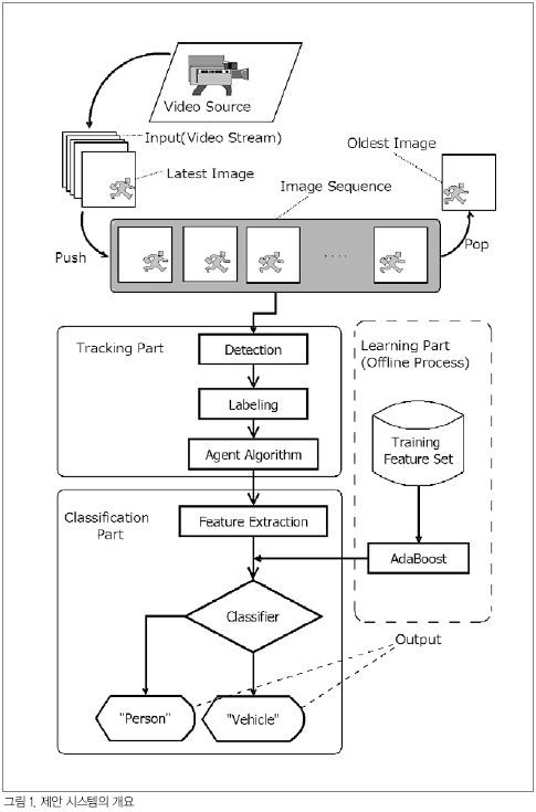 ¿©±â¿¡¼´Â ºÎ°¨(ÜöÊù) ½ÃÁ¡ÀÇ ´Ü¾È Ä«¸Þ¶ó¿¡ ÀÇÇØ ¾ò¾îÁø ½Ã°è¿ È»óÀ¸·ÎºÎÅÍ ¹°Ã¼¸¦ °ËÃ⡤ÃßÀûÇÏ¿©, ÇØ´ç ¹°Ã¼°¡ »ç¶÷ÀÎÁö Â÷ÀÎÁö¸¦ ½Äº°ÇÒ ¶§±îÁö ÅëÇÕÀûÀ¸·Î ÃßÀûÇÏ´Â ÃßÀû½Äº° ½Ã½ºÅÛÀ» Á¦¾ÈÇÑ´Ù. ¶ÇÇÑ »óÁ¤ÇÏ´Â ¿î¿ë ȯ°æÀº ¿Á¿Ü ÁÖÂ÷ÀåÀ¸·Î Çϸç, ½Äº° Ŭ·¡½º´Â »ç¶÷ÀÎÁö Â÷·®ÀÎÁöÀÇ 2Á¾·ù·Î Çϱâ·Î ÇÑ´Ù.