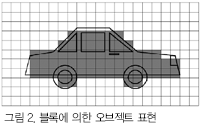 Á¦¾È ½Ã½ºÅÛ¿¡ ÀÖ¾î¼ È»óÀº ÇÑ º¯ÀÌ ÀÓÀÇÀÇ Çȼ¿ ±æÀÌÀÎ Á¤¹æÇüÀÇ ºí·ÏÀ¸·Î ±¸ºÐµÈ´Ù. ÀÎ½Ä ´ë»óÀÌ µÇ´Â ¹°Ã¼(¿ÀºêÁ§Æ®)´Â ¸ðµÎ ÀÌ ºí·Ï¸¶´Ù ÀνĵȴÙ. ºí·Ï ¿µ¿ª¿¡ ÀÇÇØ¼ ±¸ºÐµÇ´Â È»óÀÇ ¿¹¸¦ ±×¸² 2¿¡ ³ªÅ¸³½´Ù. ±×¸²¿¡¼´Â ¹°Ã¼°¡ Á¸ÀçÇÑ´Ù°í º¸¿©Áø ºí·Ï ¿µ¿ªÀÌ Âø»öµÇ¾î ÀÖ´Ù.