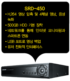 µðÁöÅÐ ½ÃÅ¥¸®Æ¼ ±Û·Î¹ú ¸®´õ »ï¼ºÅ×Å©À©(070-7147-8771~8)Àº H.264 4ä³Î º¸±ÞÇü DVR ¡¸SRD-450¡¹À» 1¿ù Ãâ½ÃÇß´Ù.